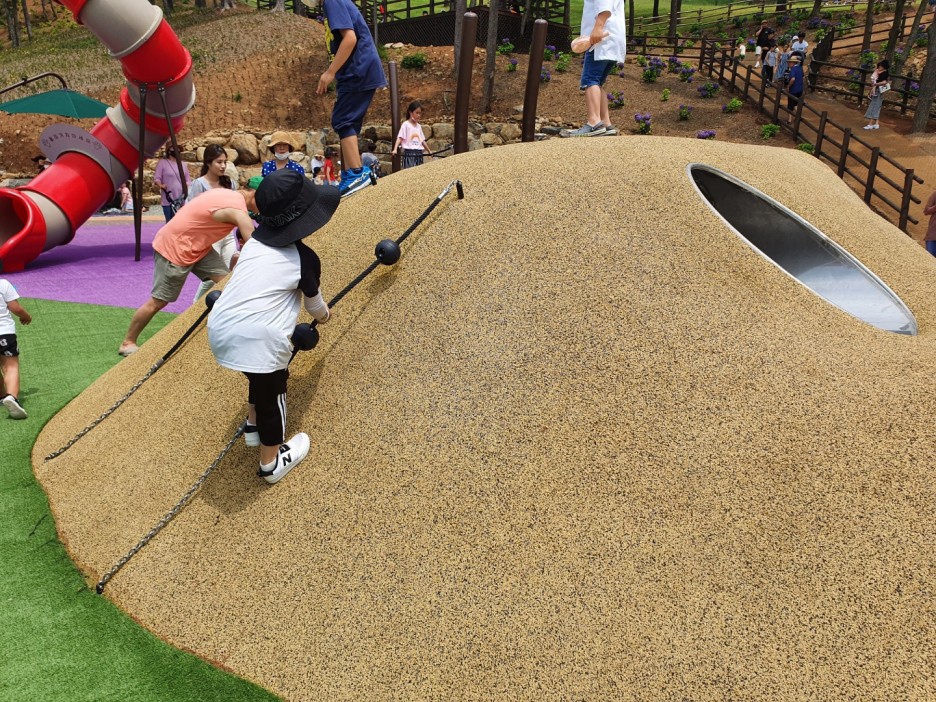 조금 큰 형아 들은 위에서 열심히 놀고 다닌다