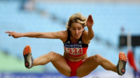 심지어 여자 선수들도 멀리뛰기 여왕 자리를 두고 싸우죠.